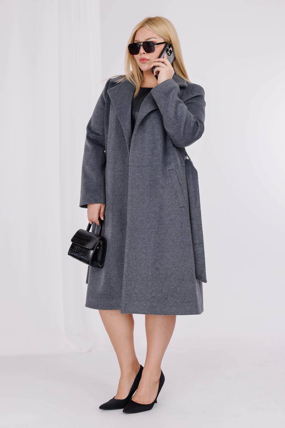 Kadın Gri Yün Kaşe Kemer ve Astar Detay Büyük Beden Kaban (MW2604104N46)